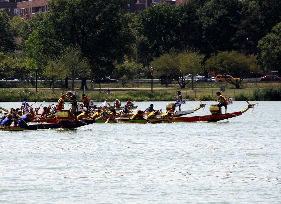 一年一度的紐約龍舟競渡大賽今天在法拉盛可樂娜公園隆重舉辦,參加隊伍有150個之多,有唐人隊伍,也有老番隊伍,場面非常熱鬧,
