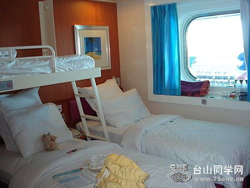 虽然我们船上的房间不大,但还算舒适,看着房内的圆窗外,
