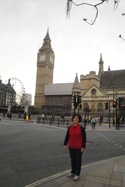 相片背景为伦敦标誌性建筑---位于泰吾士河畔的国会大厦大笨钟。
