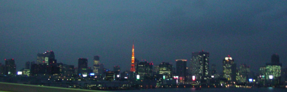 夜幕中的東京鐵塔,雄伟壮大,那一柱攀天的橘红色建筑物,尽显日本人的大男人主义,可歌可泣.