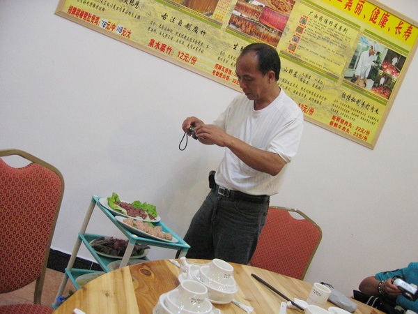 0剑雪0: 感谢美雪梨、美辣椒盛情美意,其实欢送家姐退休是借口,让我们叙旧、享福是用意.万水清山总是情,这一份情我们领了."金山猪肚鸡"颇有特色的酒店里留下了难忘的记忆.精明商家还推出了诱人的广告,看饭桌的狼狈样不说你也猜到几分.姐姐以主人身份少不免也作了开场白:感谢大家光临.有妹妹这份心意,想到退休享福自由自在生活.姐姐暗笑乐怀.还有这一煲香喷喷的煲仔饭也足你唾涎三尺.看到大家的笑脸已经心满意足了. [/quote]“剑兄”,从你上传的一系列相片可窥你的为人咯,活似“湿水棉花——冇得弹”!