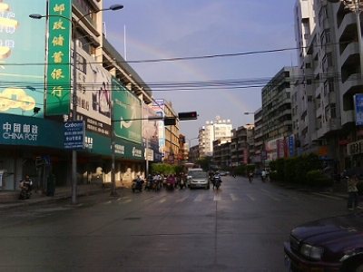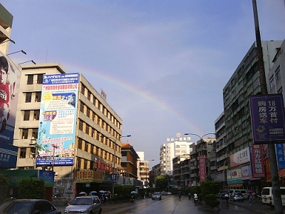 2009年6月19日下午6时下了一阵小雨,让我捕捉到幸福的一瞬间,很久没见过彩虹了.放上来让大家一起感受那种幸福.由于是手机拍下的,有些模糊,见谅~~~