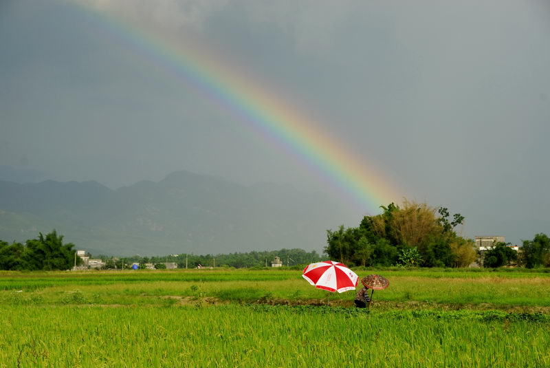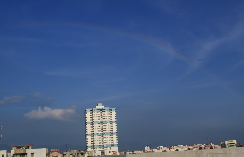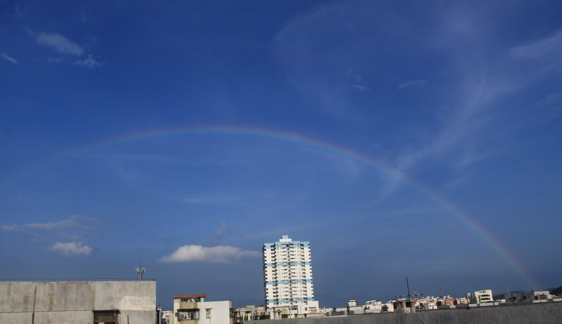 雨过天晴,难得一见的彩虹让你拍到了。恭喜。手机拍的也很不错,请继续多拍家乡的靓相。谢谢永华钟表。