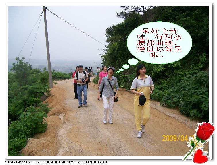 陈导游作动员报告:今次请大家来并非贪图享乐,整个行程要爬山涉水,任务艰苦,要有先苦(登山)后甜(晚餐)的思想准备...