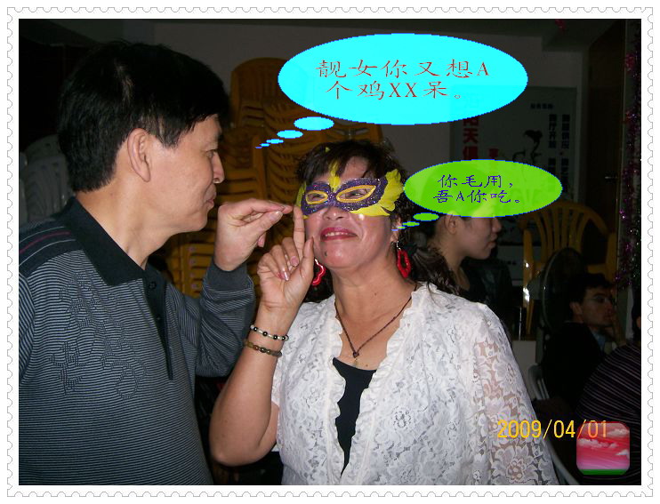 哈,化妆舞会真好玩哇。