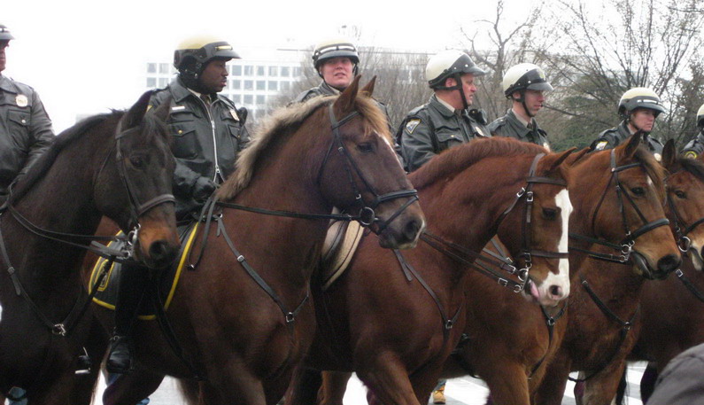 你看多整齐的警察马队, 多威风啊! 还是高大威猛的西洋马! 小时我发梦都想能骑上一回就好了......