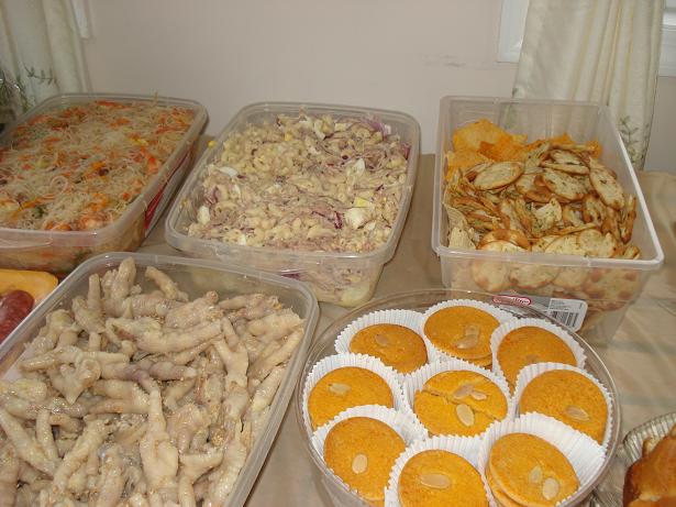除烧鸡亦外还有:北极熊掌香肠仔,深海鲍丝会粉丝,海鲜上湯爬兆菜,北斗蠔油捞菜芯,百果沙拉,夏威夷香蕉,非烘干饼干,NY白玉兰牌凤爪,兰牌蛋弹糕。