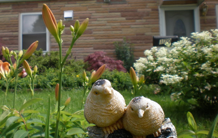 我家门前的花园, 我家门前还有一对看门的鸟呢! 哈哈!