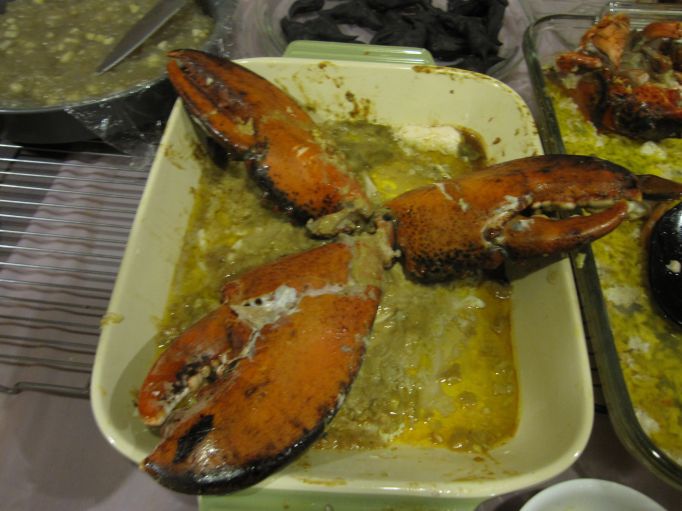 Laotao: 斌斌: Laotao: 惊喜: 边防军: Laotao:惊喜大师是华府特约嘉賓,总理指示留龙虾鉗三只。老头:留A惊喜大师是应该的,但龙虾鉗应该是双数,现只剩下三只,究竟偷吃了,请顺主任查明。 卖系咯,好事要成双,A多只吾怕啦!本来系留二双架,见大师颁一等奖呆心里甜蜜蜜,所以呆吃了一只。报告边防軍叔叔:现己查出是斌斌偷吃龙虾鉗。各位大哥大,谁偷吃都吾紧要,波士顿龙虾即到。