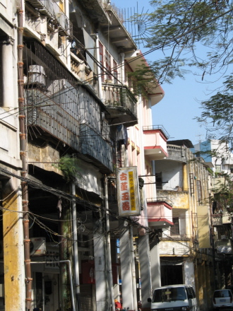 西濠路绿树成荫,从头数起:计有木棉树,在舒加达GG家阳台伸手可摘花。跟着是金钱树、凤凰树两棵、紫荆树和最后一棵不知名,树叶很窄,小小黄花,树杆很大,两个人才抱住。原来还有两棵,被台风吹倒了就再没补种。