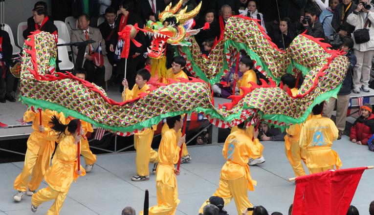 华府醒獅賀新春。