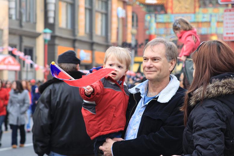 爸爸抱着我來趁熱鬧.好開心嘩