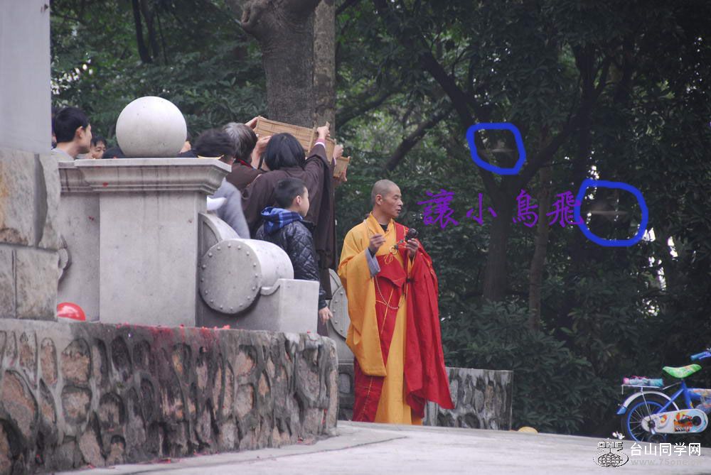 今天在石化山西岩寺,碰到一班信众在放生小鸟。